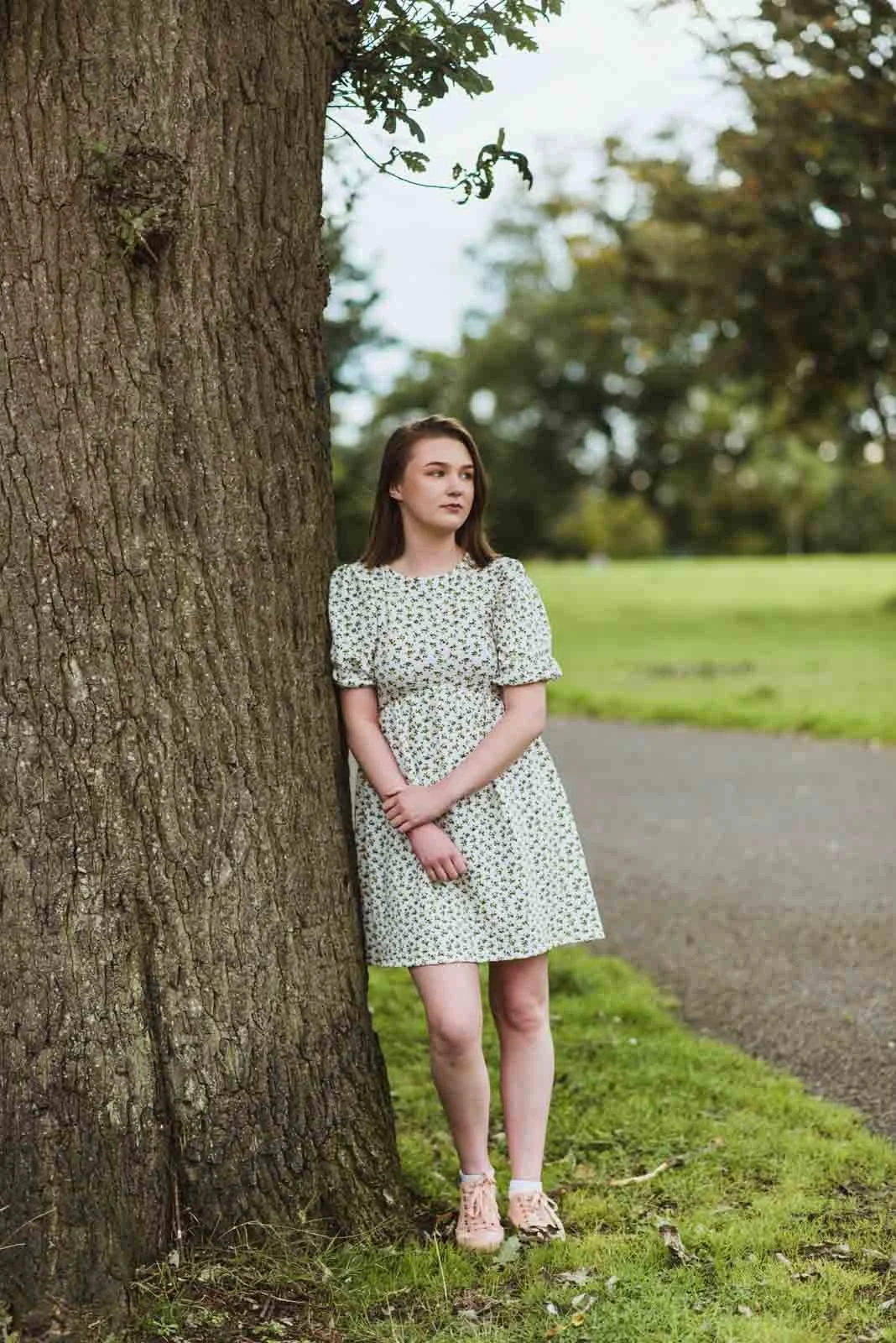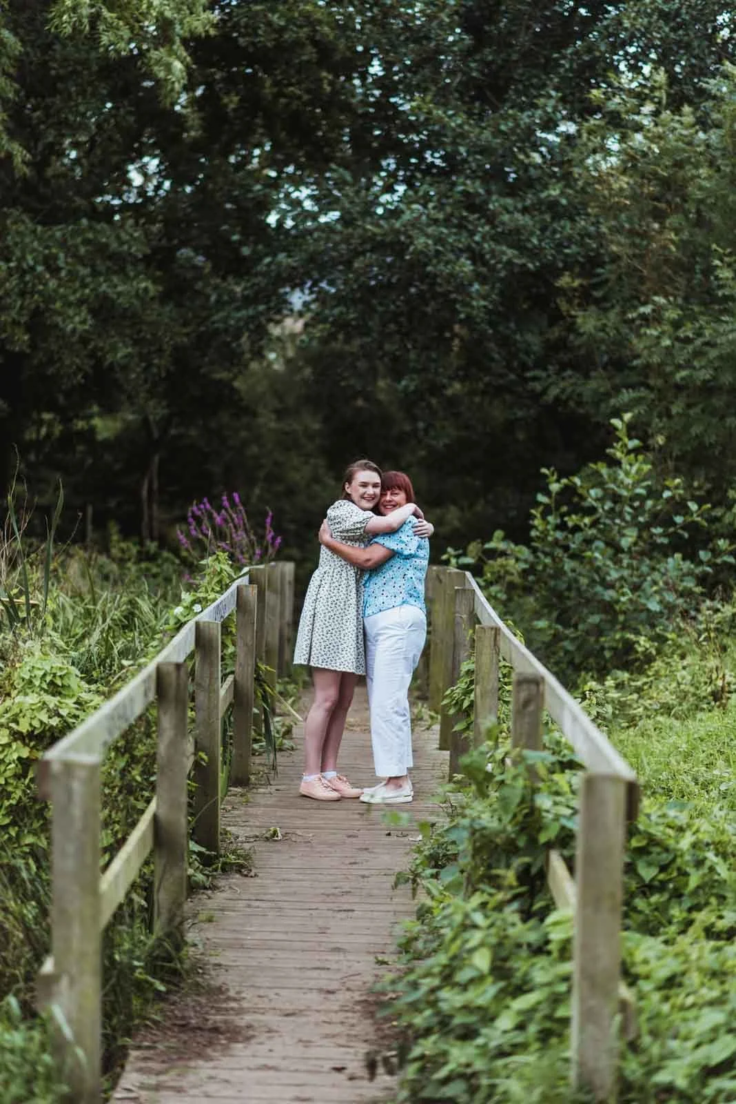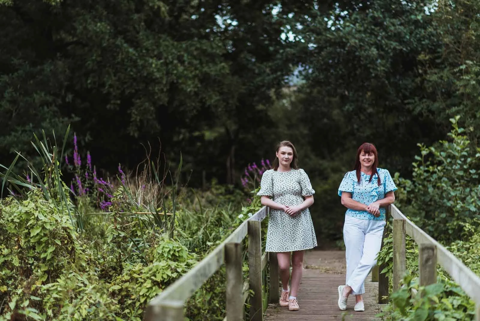 We took a walk around some parts of the park, taking photos if we saw something interesting. In the summer months, this is fairly easy to do. The theme was location family portraits, so I wanted to get a few portraits of the family. We stopped off at the wooden bridge for some portrait-style photos. For fun family photography, there was no shortage of areas within walking distance. I tried to think of variations in walking, standing, posing and sitting down to break the photos up a bit. As there were two young lads and a girl, we took a few variations with the siblings and mother. As it was August, the flowers were in bloom, with a few on display which always looked picturesque in my images.